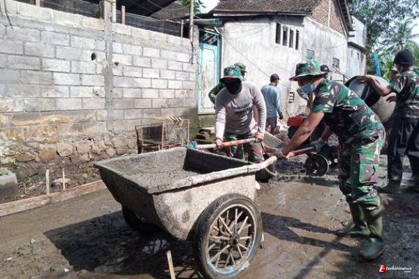 Tak pernah luntur kebersamaan TNI bersama masyarakat Desa Ketapang Kecamatan Susukan Kabupaten Semarang, angkong selalu menemani TNI dan warga setiap melaksanakan pekerjaan pengecoran jalan.
