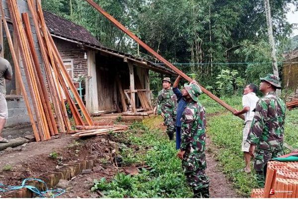 kab semarang - Bersinergi Membangun Negeri, TMMD ke-110 Kodim 0714/salatiga terus berjalan dengan berbagai aktivitas pembangunan baik fisik dan non fisik. Seperti pembangunan Rumah Tidak Layak Huni (RTLH) di Desa ketapang Kecamatan susukan kabupaten semarang , senin (15/03/2021).