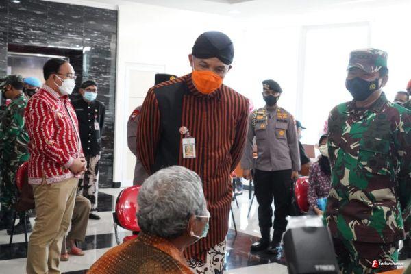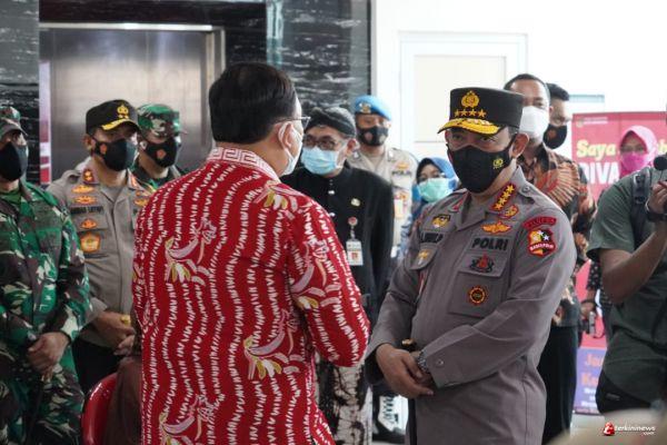 Kapolri Jendral Pol Listyo Sigit Prabowo bersama Panglima TNI Marsekal TNI Hadi Tjahjanto, tinjau vaksinasi di Puskesmas Pandanaran, dalam kunjungannya ke Kota Semarang Jawa Tengah, pukul 11.00 Wib pagi ini, Kamis (18/3/21),
