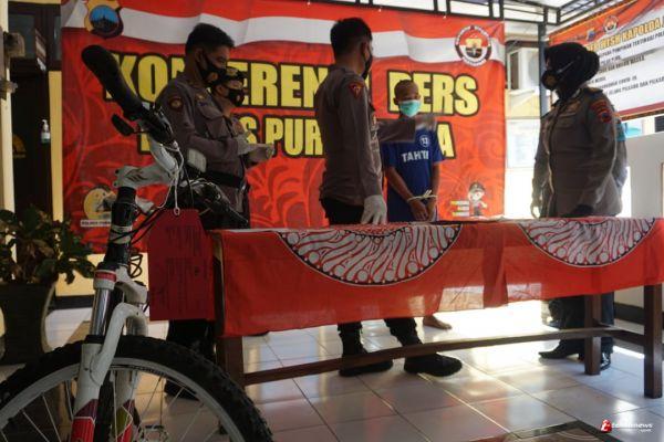 Pelaku pencurian sepeda kayuh berhasil diamankan polisi dari Polsek Kejobong Polres Purbalingga. Pelaku terlebih dahulu ditangkap korban yang memergoki pelaku sedang membawa sepeda hasil curian tidak jauh dari lokasi kejadian.