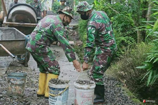 Tidak pernah putus asa dalam melaksanakan tugas pengecoran jalan bersama TMMD Reguler ke-110 Kodim 0714/Salatiga, bersama masyarakat Desa Ketapang Kecamatan Susukan.