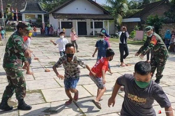 Babinsa Koramil 07 Kecamatan Susukan menjawab celoteh Rani " kan kemarin adik adik sibuk main HP, jadi pak Tentara nggak berani, ternyata adek adek suka ya main Gobak Sodor," jawabnya.