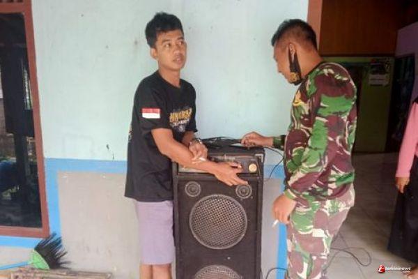 Praka Simon ( 30 ) personil satgas TMMD yang selalu setiap kegiatan perhatian tersendiri untuk mendengar musik.