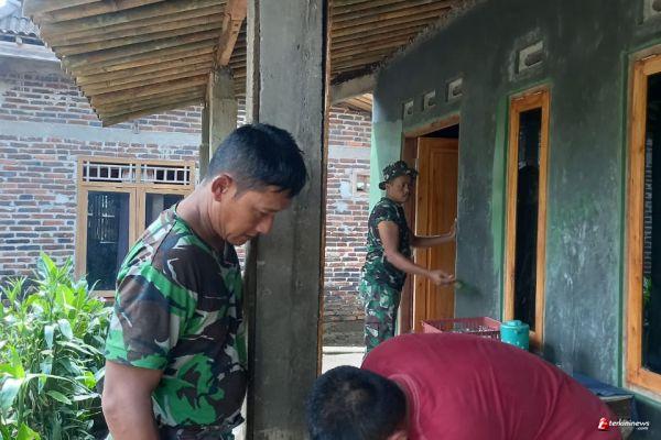 Kabupaten Semarang- Satuan Tugas TMMD Reguler ke- 110 Kodim 0714/Salatiga Serma Rohmat bersama warga Suroso (41) memasang papan ditiang cagak teras dilepo/aci supaya tidak miring dan rapi.