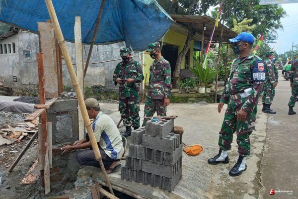 Kapten Inf Sukodir dan Kapten Arh Tarji melakukan pengecekan pembangunan tugu prasasti yang menjadi simbol kegiatan TMMD Reg-110 Kodim 0714/Salatiga di Desa Ketapang Kecamatan Susukan Kabupaten Semarang, Sabtu (20/03/2021)