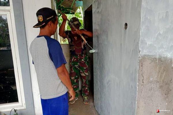 Kabupaten Semarang, Personil Satgas TMMD Reguler ke 110 Kodim 7014/Salatiga bersama warga saat ini bergotong royong melakukan pengecatan Mushola ALHUDA 2. Bertempat di Dusun Sari Mulyo RT 02/05 Desa Ketapang Kecamatan Susukan,yang merupakan salah satu sasaran fisik TMMD mulai menampak Hasilnya.