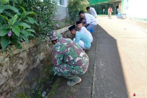 Kabupaten Semarang, Kebersihan adalah sebagian dari iman. Untuk mewujudkan lingkungan yang bersih maka Satgas TMMD Regular ke 110 Kodim 0714/ Salatiga bersama para santri melaksanakan bersih bersih di lingkungan pesantren.