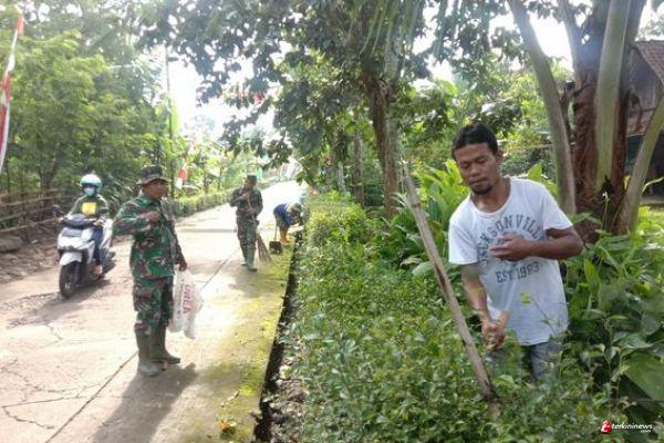 Bersih-bersih dalam lingkungan biasanya dilakukan secara bergotong-royong oleh warga,namun dalam kesempatan ini berisih-bersih dilakukan oleh warga bersama dengan anggota Satgas TMMD.