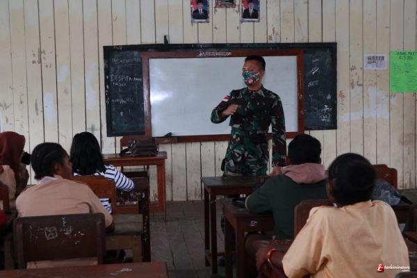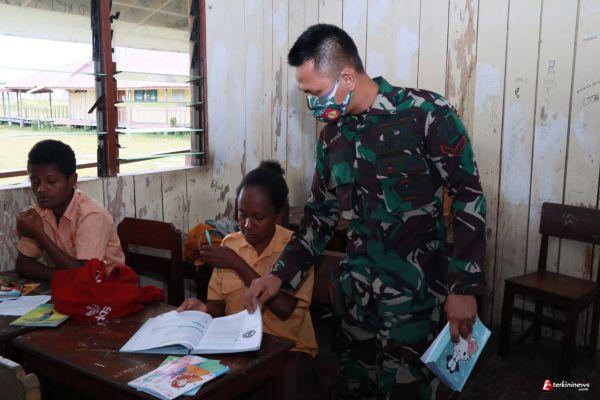 Peduli Pendidikan, Prajurit Pamtas RI PNG YONIF 403/Wirasada Pratista Bantu Mengajar di Wilayah Perbatasan