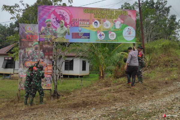 Pedulikan Masyarakat Satgas TMMD 110 Putussibau Pasang Himbauan COVID -19