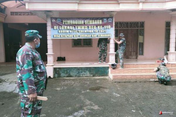 Kabupaten Semarang- Berbuat terbaik untuk rakyat, Satgas TMMD Kodim 0714/Salatiga konsisten untuk persiapan pembagian sembako kepada masyarakat di wilayah Desa Ketapang.