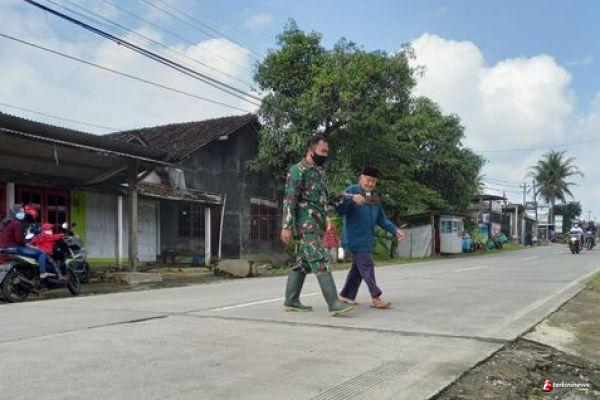 Satgas TMMD Bantu Lansia Menyeberangi Jalan