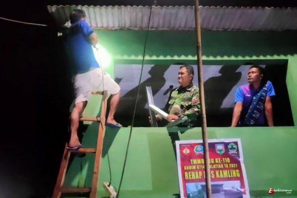 Satgas TMMD Membantu Warga  Dalam Pemasangan Lampu Pos Kamling