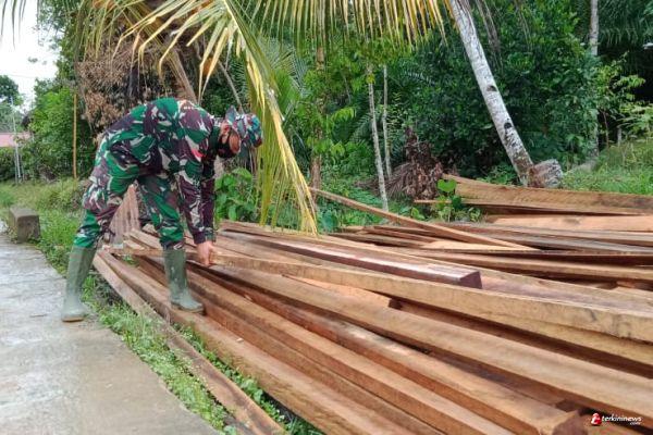 Anggota Satgas TMMD 110 Kodim 1206/PSB Bantu Angkut Material Kayu Masyarakat