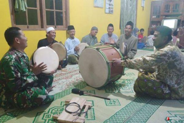 Seperti yang dilakukan Pelda Samin,dia mengikuti latihan rebana bersama dengan warga sekitar lokasi TMMD walau hanya beberapa orang,namun walau hanya dengan beberapa orang saja mereka tetap melaksanakan latihan dengan penuh semangat.