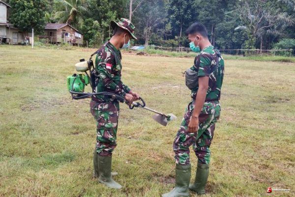 Sama apa yang sampaikan oleh Ernawati bendahara Karang taruna Hulu Pengkadan untuk pembersihan lapangan bola dan merenovasi sudah berjalan 3(tiga) hari oleh satgas TMMD 110 Putussibau dengan Pemuda .