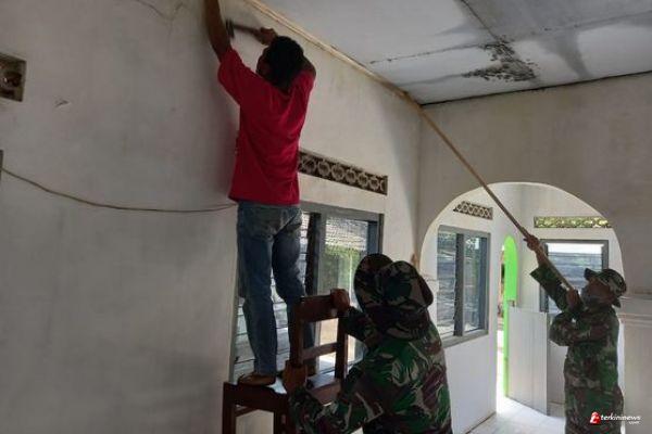 Menurut Kopda Nanang Angota Satgas TMMD 110 setempat yang turut dalam pengerjaan, “Bahwa proses pembangunan saat ini fokus pada pemsangan lis plafon atap Musholla tersebut.