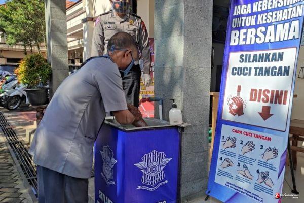 Selama memberikan layanan, petugas dengan tegas memberikan imbauan kepada para pemohon agar memakai masker serta mencuci tangan dengan sabun atau menggunakan hand sanitizer serta dilakukan pemeriksaan suhu tubuh mengunakan termo gun sebelum masuk ruangan pembuatan SIM.