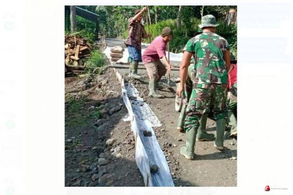 Satgas dan Warga selalu bekerja sama agar target harian terlampaui. Demikian juga dengan tugas pengecoran jalan Desa Ketapang Kecamatan Susukan yang menjadi sasaran fisik program TMMD Regular ke 110 Kodim 0714/Salatiga.