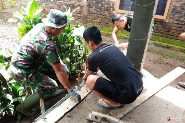 Desa Ketapang Kecamatan Susukan Kabupaten Semarang yang terkena program RTLH dalam TMMD , hari ini memasuki finising bagian teras rumah guna memperindah sehingga enak dipandang
