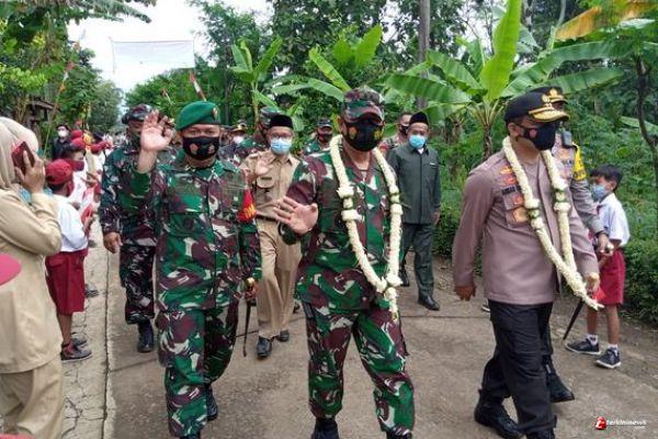 Kabupaten Semarang-Dalam rangka kunjungan Pangdam beserta Kapolda hari ini di lokasi TMMD di Desa Ketapang,setelah menerima sambutan dan pengalungan bunga oleh warga Desa Ketapang rombongan menuju lokasi kunjungan dengan berjalan kaki.