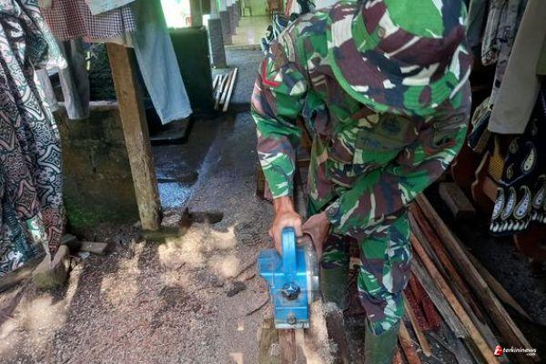 Satgas Bantu Warga Serut Kayu untuk Pembuatan Kusen