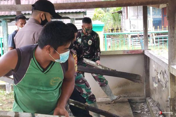 Pengkadan - Serda Usen dan beberapa anggota Satgas TMMD Regtas Kodim 1206/PSB bersama warga bergotong royong membuat tempat air wudhu bertempat di Masjid Al-Mubarok, Dusun sukaramai, Desa hulu Pengkadan, Kecamatan Pengkadan, kabupaten Kapuas hulu.