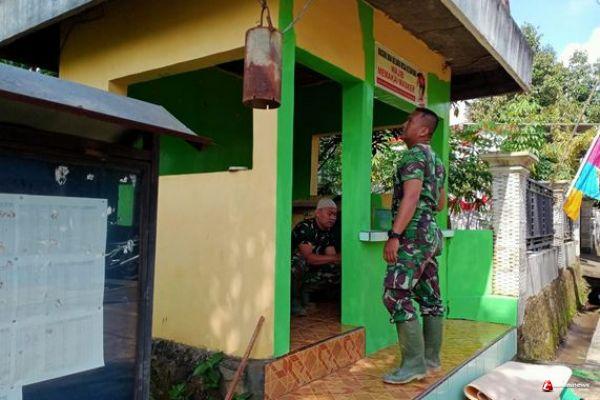 Kabupaten Semarang- Anggota Satgas TMMD ke-110 Kodim 0714/Salatiga Kopda Sarimulyo bersama rekannya melakukan pengecatan pos kamling yang baru di rehab di Dusun Sarimulyo,Kecamatan Susukan Kabupaten Semarang.
