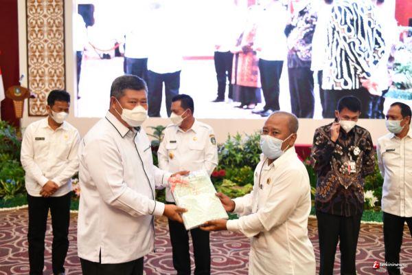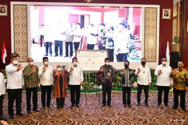 Rakor tersebut diakhiri dengan penandatanganan komitmen pembangunan sistem pengaduan masyarakat oleh seluruh kepala daerah dan penyerahan sertifikat tanah pemda serta serah terima PSU/Penerbitan Aset.