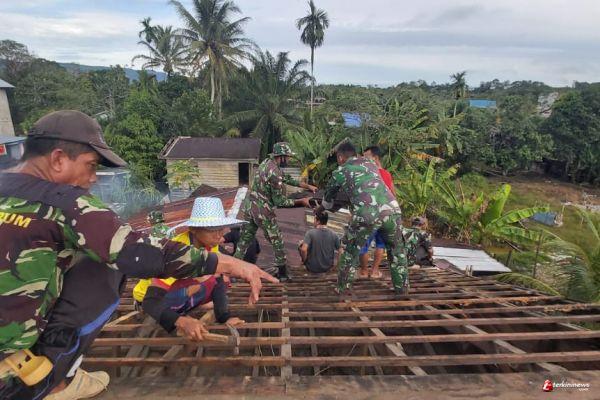 Satgas Pamtas Yonif 407/PK Karya Bhakti Merenovasi Genteng Rumah Milik Warga Perbatasan