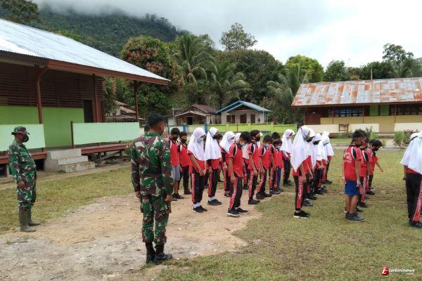 Tanamkan Disiplin Sejak Dini, Satgas TMMD ke 110 Kodim 1206/PSB Latih PBB