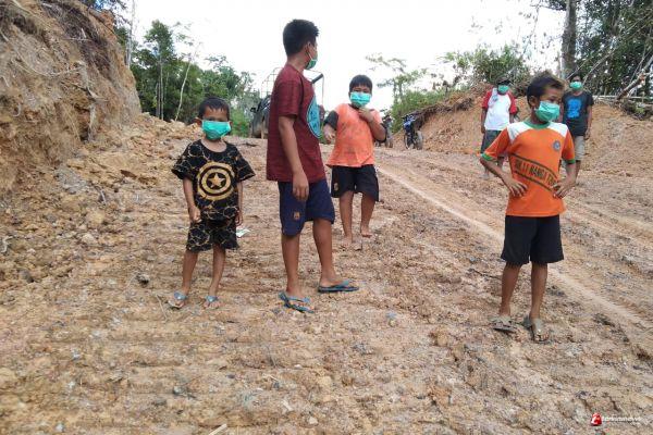Sertu Yudha dari satgas Kodim 1206/PSB mengatakan.”Anak-anak ini memang sudah dari pagi hari melihat kinerja alat berat yang sedang dalam membenahi jalan.