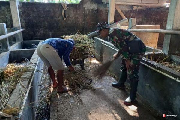 Seperti yang dilakukan salah satu anggota Satgas TMMD, Koptu Ahmad Sodikin, tanpa sungkan-sungkan membant membersihkan kandang sapi milik Riski Amin (45) warga Dusun Sari mulyo Rt 03 Rw 05 Desa Ketapang, Rabu (24/03/21)