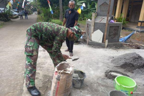 Kabupaten Semarang - Pada hari kamis 25/03/2021," Tugu Prasasti diperindah dan halus luar pun di percantik oleh anggota Satuan Tugas Tentara Menunggal Membangun Desa Ke 110 Kodim 0714/Salatiga yang sedang melakukan plesteran, pengacian semen, Tugu Prasasti bagian luar biar nampak halus dan rapi.