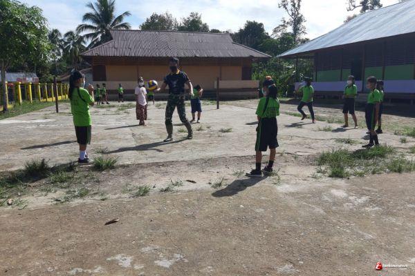 Anggota Satgas TMMD Ini Menyempatkan Diri Bermain Bersama Anak-anak, Tujuannya Untuk Menghibur HatiÂ