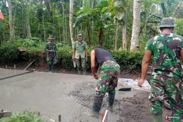 Kabupaten Semarang, personil Satgas TMMD Reguler ke 110 Kodim 0714/Salatiga dengan warga melakukan pengecoran jalan bertempat di Desa Ketapang Kecamatan Susukan.