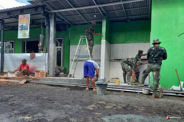 "Bapak-bapak TNI kompak dengan keahlian masing-masing, kami asik potong Keramik ternyata pak Bowo dan teman-teman juga sedang mengerjakan pekerjaan lainnya seperti mengecat,ada yang membersihkan keramik dari bekas semen dan lain-lainnya", ucap Sarno.