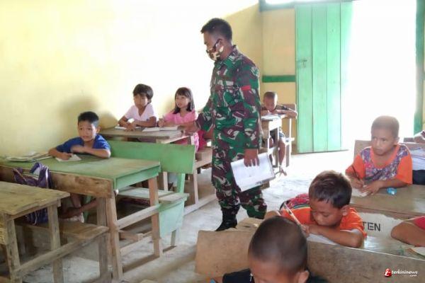 Minimnya Guru Diperbatasan, Satgas Pamtas Yonif 407/PK Bantu Mengajar