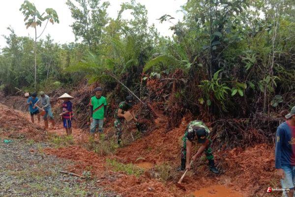 Satgas Pamtas Yonif 407/PK Bersama Warga Perbatasan Karya Bhakti Pembuatan Parit
