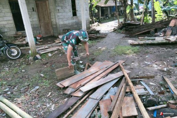 TNI Merapikan Sisa Kayu Tidak Terpakai