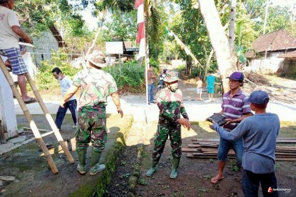 Kabupaten Semarang, Semangat Personil Satgas TMMD Reguler ke 110 Kodim 0714/Salatiga Terus bekerja keras menyelesaikan Renovasi Mushola ATTAQWA Yang Saat ini Sedang melakukan Pembongkaran Atap, bertempat di Desa Ketapang Kecamatan Susukan.