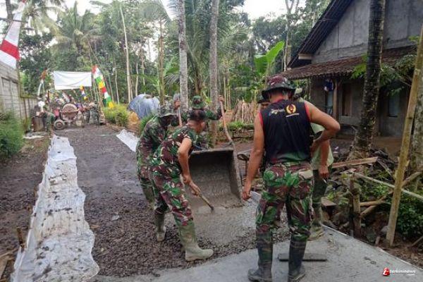 Kabupaten Semarang-Program pengecoran jalan di Desa Ketapang semakin hari semakin mulai terlihat hasilnya namun semangat kerja para anggota TMMD dalam merampungkan program pengecoran jalan tersebut masih terlihat.