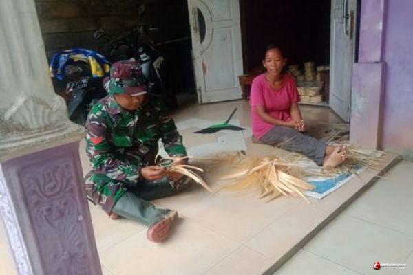 Di sela-sela istirahat bekerja dalam kegiatan TMMD, Koptu Haris(38) mendatangi rumah Suryati(35) yang sedang sibuk mengerjakan kerajinan bambu berupa besek di Dusun Sarimulyo RT 03/04 Desa Ketapang Kecamatan Susukan Kabupaten Semarang.