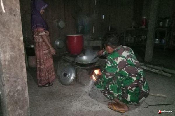 Namun kekompakan itu terlihat hingga di dapur milik Ibu Parmi.Mereka para anggota Satgas TMMD juga kompak untuk menyiapkan makanan para anggota Satgas bersama Ibu Parmi.