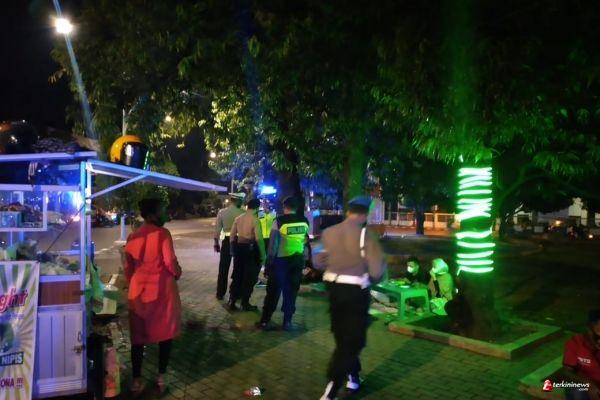 Sejumlah warga dan anak muda yang ditemukan berkerumun di dua lokasi Alun alun dan Jetayu wilayah Kecamatan Pekalongan Timur dan Pekalongan Utara dibubarkan polisi dari Piket Pawas dan Polsek Pekalongan Timur, Sabtu malam minggu (27/3/2021). Selain berkerumun warga juga ditemukan banyak yang tidak bermasker.