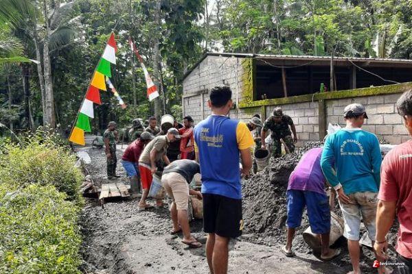 Kabupaten Semarang - Tidak pernah putus asa dalam melaksanakan tugas pengecoran jalan sebelum purna, bersama TMMD Reguler ke-110 Kodim 0714/Salatiga, Jum'at(26/03/2021)