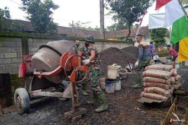 Tak pernah luntur kebersamaan TNI bersama masyarakat Desa Ketapang Kecamatan Susukan Kabupaten Semarang,Mari Bersama sama melaksanakan setiap pekerjaan pengecoran jalan.