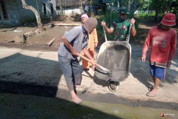 Kabupaten Semarang - TMMD Reguler ke-110 Kodim 0714/Salatiga, berusaha selalu memberikan yang terbaik, melanjutkan pekerjaan fisik pengecoran jalan, Minggu (28/03/2021).