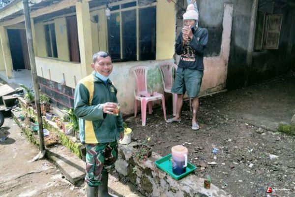 Kebersamaan terlihat sangat nyata saat istirahat menikmati cemilan dan segelas teh manis di lokasi TMMD. Tidak terlihat jarak yang memisahkan diantara keduanya.
