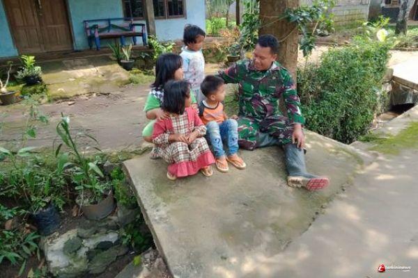 Kabupaten Semarang - Satgas TMMD Regular ke 110 Kodim 0714/Salatiga juga masih manusia biasa. Begitu melihat kelucuan anak kecil membuat hatinya tergelitik untuk mendekatinya. Selama ini rakyat mungkin pernah berpikir dan membayangkan bahwa tentara adalah sosok lelaki berperawakan gagah berseragam loreng serta bersenjata, mereka menerobos medan perang atau daerah rawan konflik dengan tak lupa melaksanakan penyamaran.
